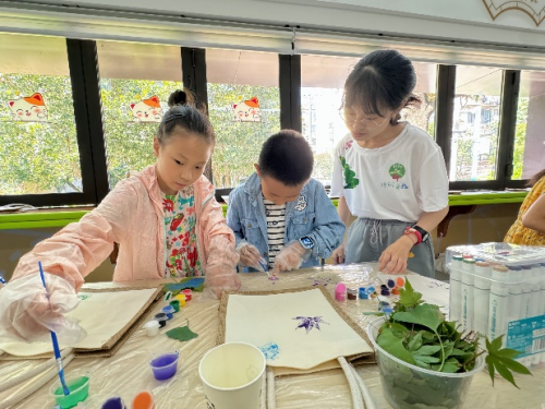 7月28日, “绿研童趣”——上海市儿童友好社区环境亲自然发展状况调研实践团与杨浦区殷行街道未成年人保护站联合举办了“童心绘自然,绿意印童年”活动,来自杨浦区的13名学龄儿童参与了此次活动。本次活动旨在加强儿童亲自然观念,通过“马克笔绘画”、“植物拓印”等趣味体验,提升儿童对自然艺术的感知力、创造力、想象力和欣赏力。
