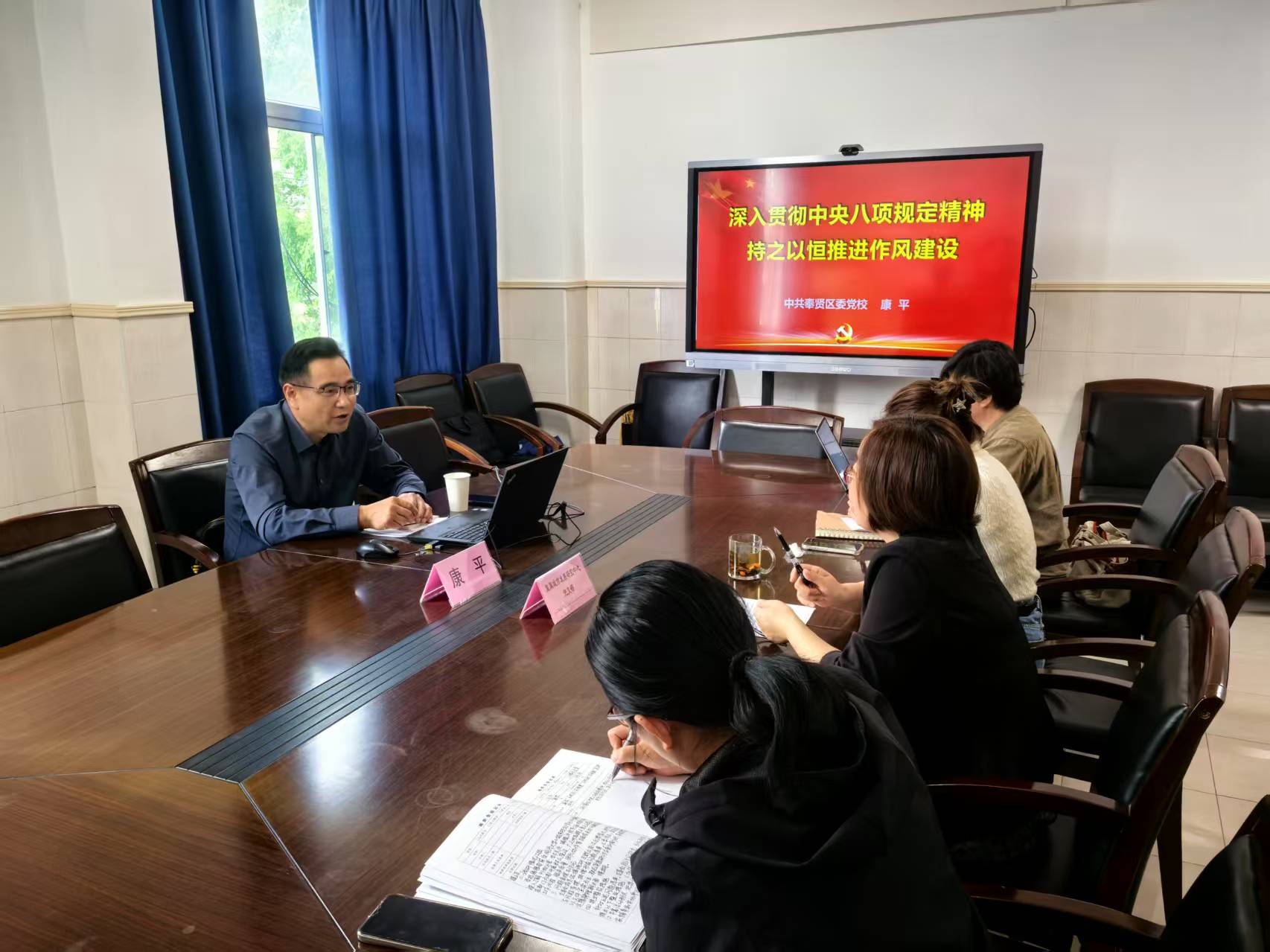 为深入贯彻中央八项规定精神学习教育,4月23日下午,直属城市发展研究中心党支部邀请奉贤区委党校学员工作部主任康平开展题为《深入贯彻中央八项规定精神,持之以恒推进作风建设》的专题讲座,支部书记逯改主持会议,全体党员参加此次学习。