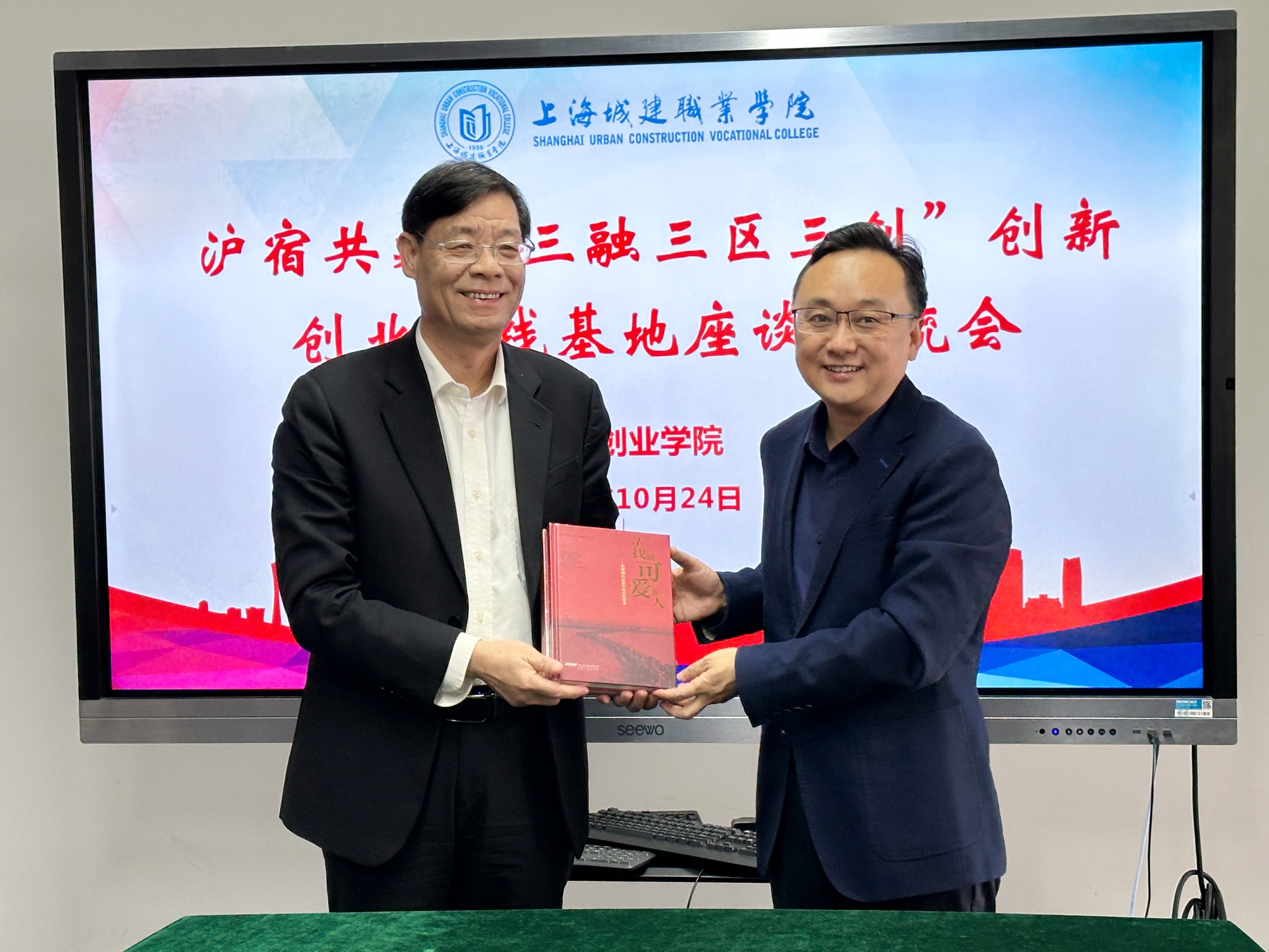 为进一步深化长三角职业教育合作,10月24日,宿州市退役军人事务局党组书记、局长陈瑾,副局长戴安君一行来我校就共建沪宿“三创”实践基地考察交流。校长叶银忠,副校长仓平出席会议,创新创业学院院长宋柏红主持会议。