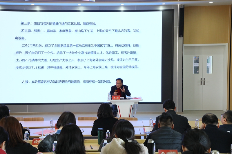 在“劳模工匠精神育人”系列活动启动仪式上,上海市劳动模范、原米其林集团(上海)专职党委书记朱强以“更文化、更有趣、更海派——从劳模精神传导中获取创新力量”为主题作了首场专题报告。他分享了自身在米其林公司从事党建工作、工会工作时巧妙运用党的创新理论推进外企逐步中国化的经历经验,以及帮助职工成才的有趣故事,让大家对如何立足岗位勇于创新、敢于奋斗、乐于奉献,以创造性实践诠释劳模工匠精神有了更深感悟。