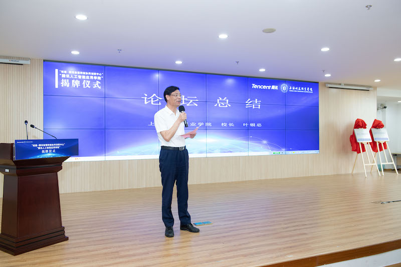 6月21日,我校“城建-腾讯智慧职教协同创新中心”“腾讯人工智能应用学院”揭牌仪式暨“走进人工智能”主题论坛在奉贤校区图文信息楼四楼多功能厅举行。党委书记褚敏、校长叶银忠、副校长李进,腾讯云教育行业商务总经理罗盛、墨桐花开教育科技有限公司副总裁胡昕亮以及腾讯、华为、科大讯飞相关领导出席活动。我校相关职能部门、二级学院负责人、师生代表参加活动。