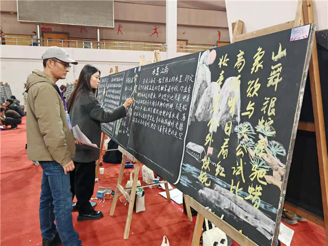 在规定动作中,他在黑板上抄下《水墨江南》的节选,绘制了一些小图案,在自选动作中,他发挥高数老师在公式推导中的特长,呈现清晰、简练的板书。在完成作品后,他掏出手机,拍下了现场板书作品,“这也算是我作为老师在板书基本功中的一份作业吧。”林炜说。