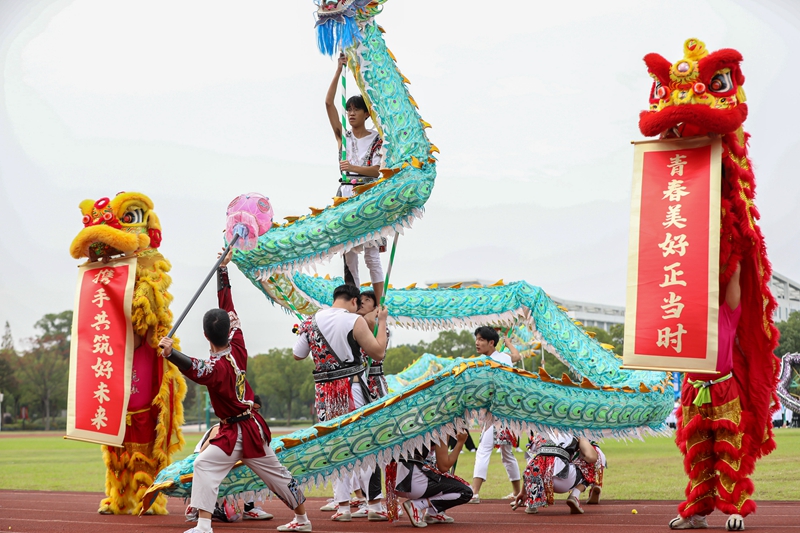 随后,褚敏、张峥嵘分别在奉贤、杨浦校区宣布本届运动会正式开幕。