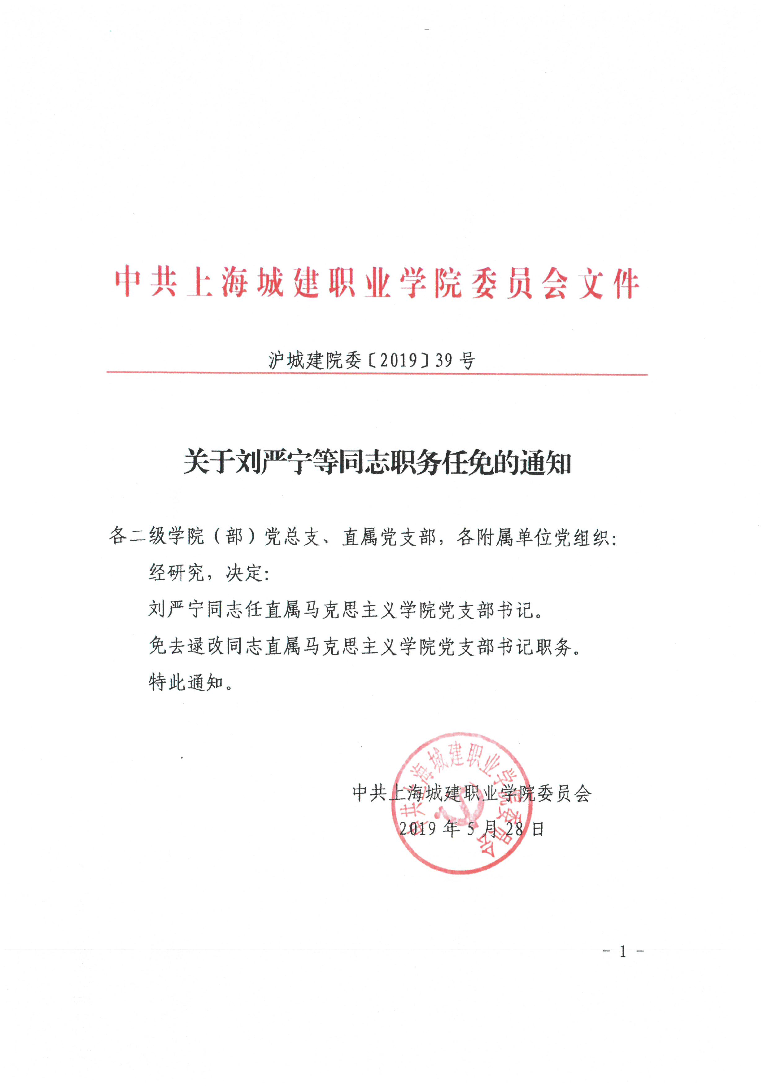 沪城建院委〔2019〕39号关于刘严宁等同志职务任免的通知
