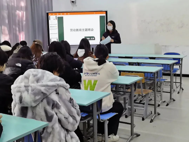 主题宣传教育——学院在公众号开设专题专栏,组织完成主题班会、劳模进班级、劳动成果展示等系列主题宣传教育活动,结合学生入学、党课、离校等重要时间节点,学院“一站式”学生社区等实体阵地,集中宣传学生在自我教育、自我管理、自我服务等方面特色做法和典型经验,强化劳动观念,弘扬劳动精神。