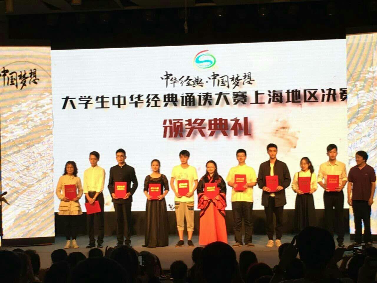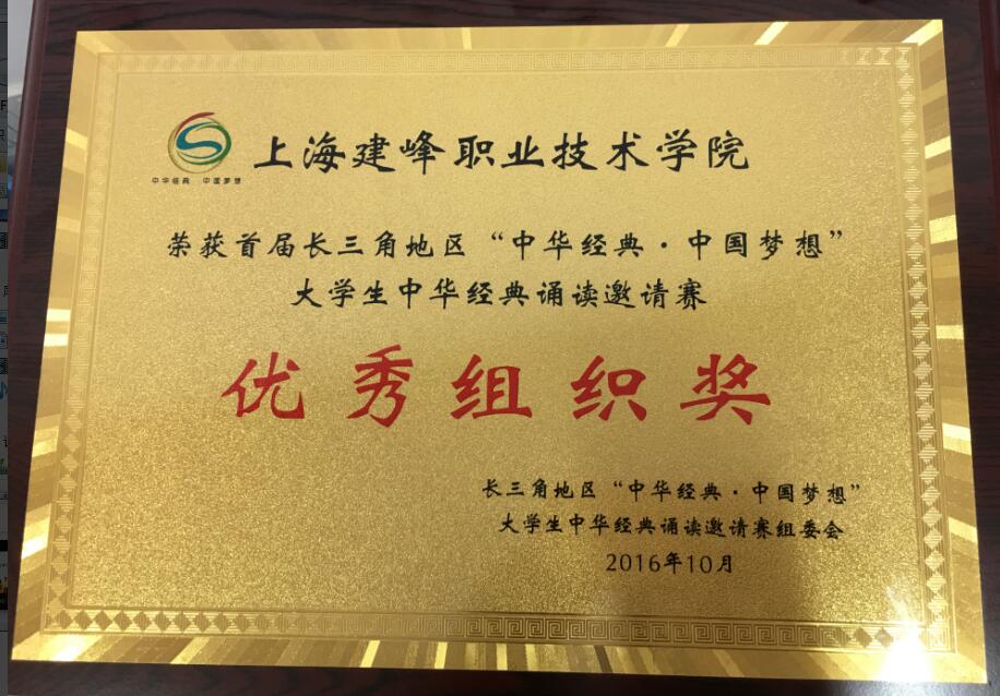 2016年10月31日上午,首届长三角地区“中华经典·中国梦想”大学生中华经典诵读邀请赛总决赛在上海师范大学霞棐剧场举行,我院2015级室内2班学生王迦勒的《一个高大的背影倒了》荣获三等奖,陈继华老师荣获“优秀指导老师奖”,学院荣获“优秀组织奖”。
