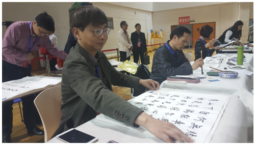 4月22日,上海市教育工会和上海市语言文字工作委员会办公室主办的2017年上海教师书法、板书、钢笔字和中国画大赛在上海第二工业大学举行。